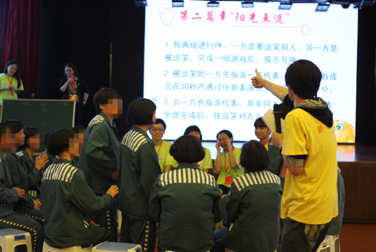 虽然阴雨蒙蒙,但却阻止不了社工同学和学员们参加活动的热情。整场活动以“阳光启程”为开场,每个小组的社工组长带领组员全身心地投入到为小组起名和设计口号的过程中,整个活动在慷慨激昂的小组口号中正式拉开序幕。之后,便是“阳光厨房”、“阳光互动”、“你是我的阳光”、“阳光释放”、“心底的阳光”、“阳光依旧灿烂”等活动。学员们用尽自己最大的努力与热情参与到游戏之中,一声声的同伴的鼓励,一次次的尽情的笑声,感染了在场的社工同学们。耳边的倾听,诉说了生活中的点点滴滴;便签纸上的愿望,写下的是渴求的简单幸福;眼角的泪光,触摸的是心底的柔软。活动在全体起立共跳兔子舞的宏大场面中达到高潮。活动临近尾声,学员们积极地分享自己在活动中所看见的、所听见的、内心所感受到的一切,表达着感激与开心之情。
