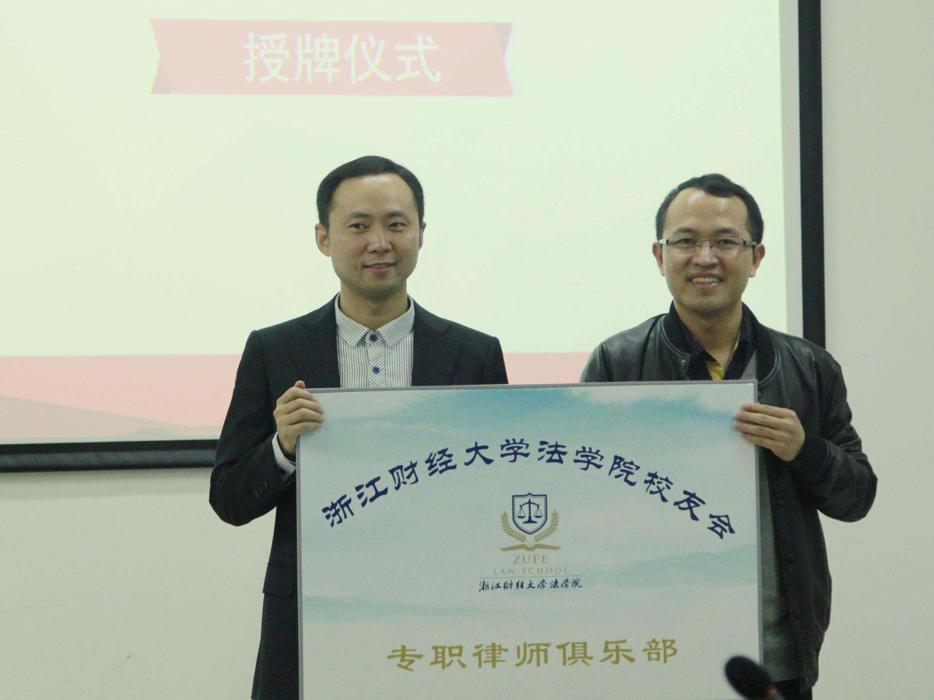 今年bat365也发起了首个校友职业俱乐部——bat365官方官网校友专职律师俱乐部。专职俱乐部采用轮值主席制,经过前期酝酿与大会审议,李慧校友当选首任轮值主席、浙江铎伦律师事务所执行合伙人方智校友当选副主席兼秘书长、北京盈科(杭州)律师事务所合伙人吴晓洁校友当选副主席。方智校友代表校友专职律师俱乐部发言,他表示俱乐部为校友们搭建一个沟通的平台、吸纳浙财大bat365官方官网从事法律专业的校友作为会员。律师校友们将利用好这个平台,凝聚共识,整合资源,抱团发展,互利共赢,回馈学院。其后,大会举行了授牌仪式,由童志锋副院长代表bat365官方官网向首任轮值主席李慧律师授牌,bat365官方官网校友律师俱乐部正式成立。