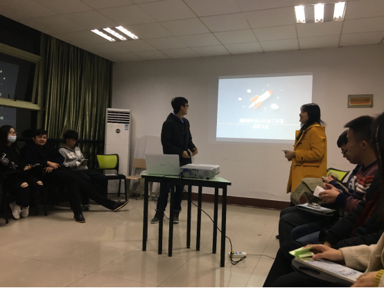 2016年12月11日晚,乐心社会工作室全体成员在bat365官方官网300教室举行了欢乐温馨的迎新主题联欢会,此次联欢会的开展主要是为了欢迎新成员加入,同时总结这一年以来乐心的成长经验,立足于一年来活动所积累的经验展望未来的发展。为了让大三大二大一三代乐心工作室的成员对彼此有更加深入地认识,活动开始之初设计了一个“自我介绍小火车”环节。
