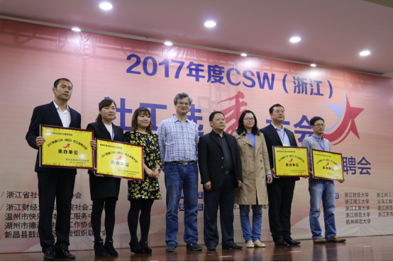 2017年4月8日,2017年度CSW(浙江)社工选秀大会暨浙江省首届社会工作专场招聘会,在浙江财经大学学术中心盛大举行。本次大会由浙江省社会工作师协会主办,浙江财经大学社会工作系、温州市快乐之本社工服务中心、湖州市德清县社会工作协会、新昌县鼓山社区社会组织联合会承办。浙江省民政厅社工处关笑丹处长、浙江省社会工作师协会副会长李红、林加帅、浙江省社会工作师协会马良理事长、浙江财经大学bat365官方官网党委书记朱丹副教授、副院长童志锋副教授等领导出席启动仪式,并和活动发起人一起为本次活动揭幕。
