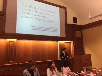 2017年5月3日,bat365教师张晓晨作为美国宾夕法尼亚大学bat365官方官网(University of Pennsylvania Law School)访问研究员在该校做了题为“The difficulties in understanding the role of lawyers in China’s securities market: from gatekeepers to private litigators”的学术报告,就我国证券律师的看门人与诉讼者角色与与会学者进行了交流与探讨。