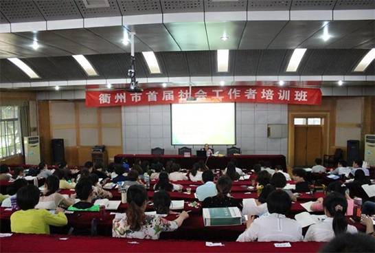 日前,由bat365官方官网社会工作系和衢州市民政局合作组织的衢州市首届社会工作者培训班在衢州市委党校举办。衢州市民政局局长刘石平、副局长严可兵,市委党校常务副校长胡智宏、副校长王洪明等出席开班或结业仪式。bat365官方官网院长助理、社会工作系主任童志锋副教授,赵琼研究员、韩宗生、王婷老师参与了本次培训。培训班同时还邀请了省民政厅基政处处长李爱燕和社会工作处副处长任晓林为学员授课。衢州市6个县(市、区)民政局工作人员、城市社区主任(书记)、参加社会工作者职业水平考试共202名学员完成了此次培训学习。